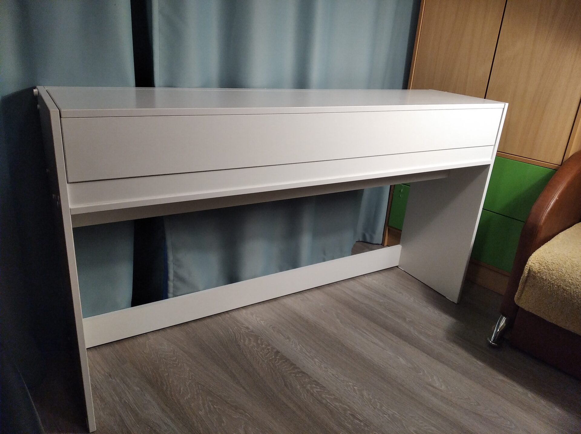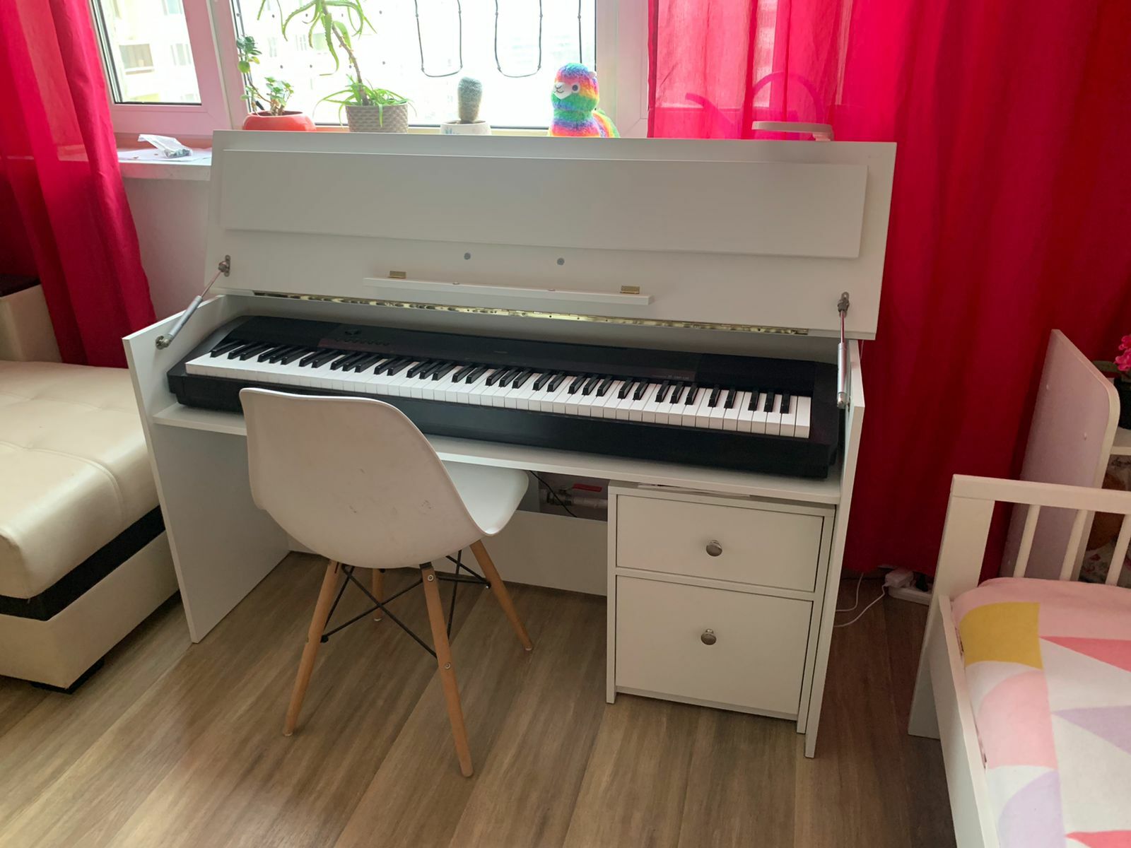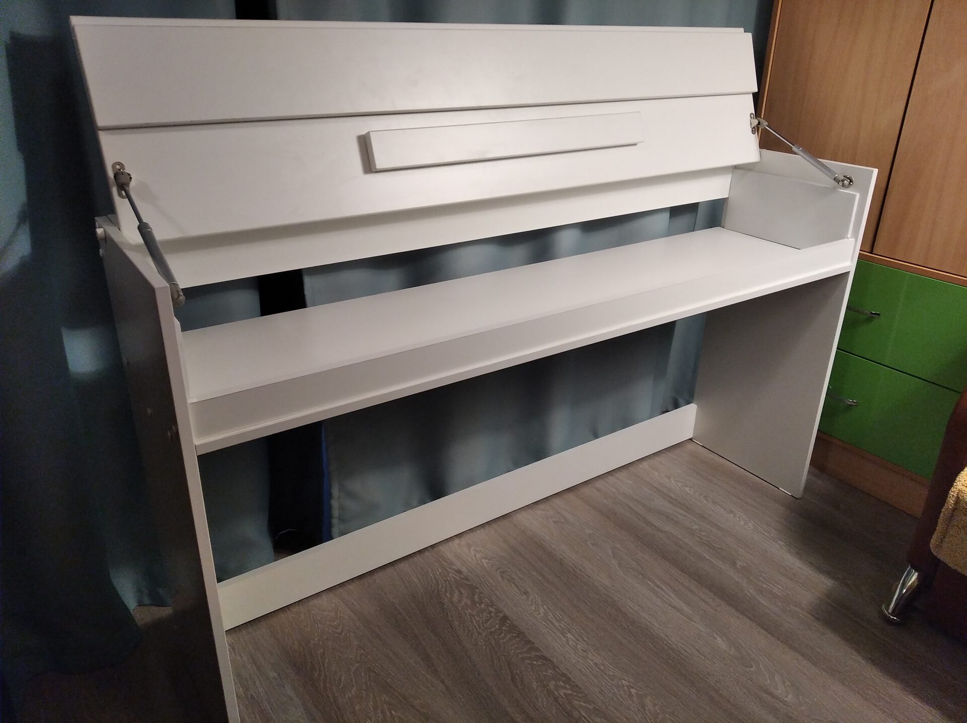 Сохранит пространство в доме .Может использоваться как рабочий письменный стол и одновременно является удобной стойкой для цифрового пианино.