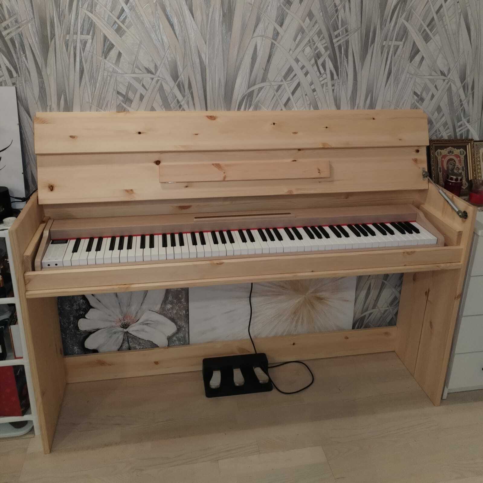 Подставка под цифровое пианино с крышкой и тумбой для хранения нот.